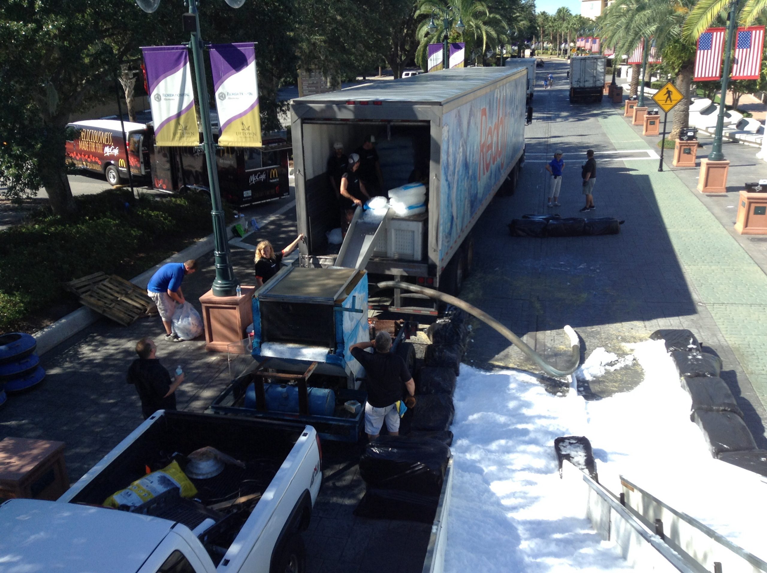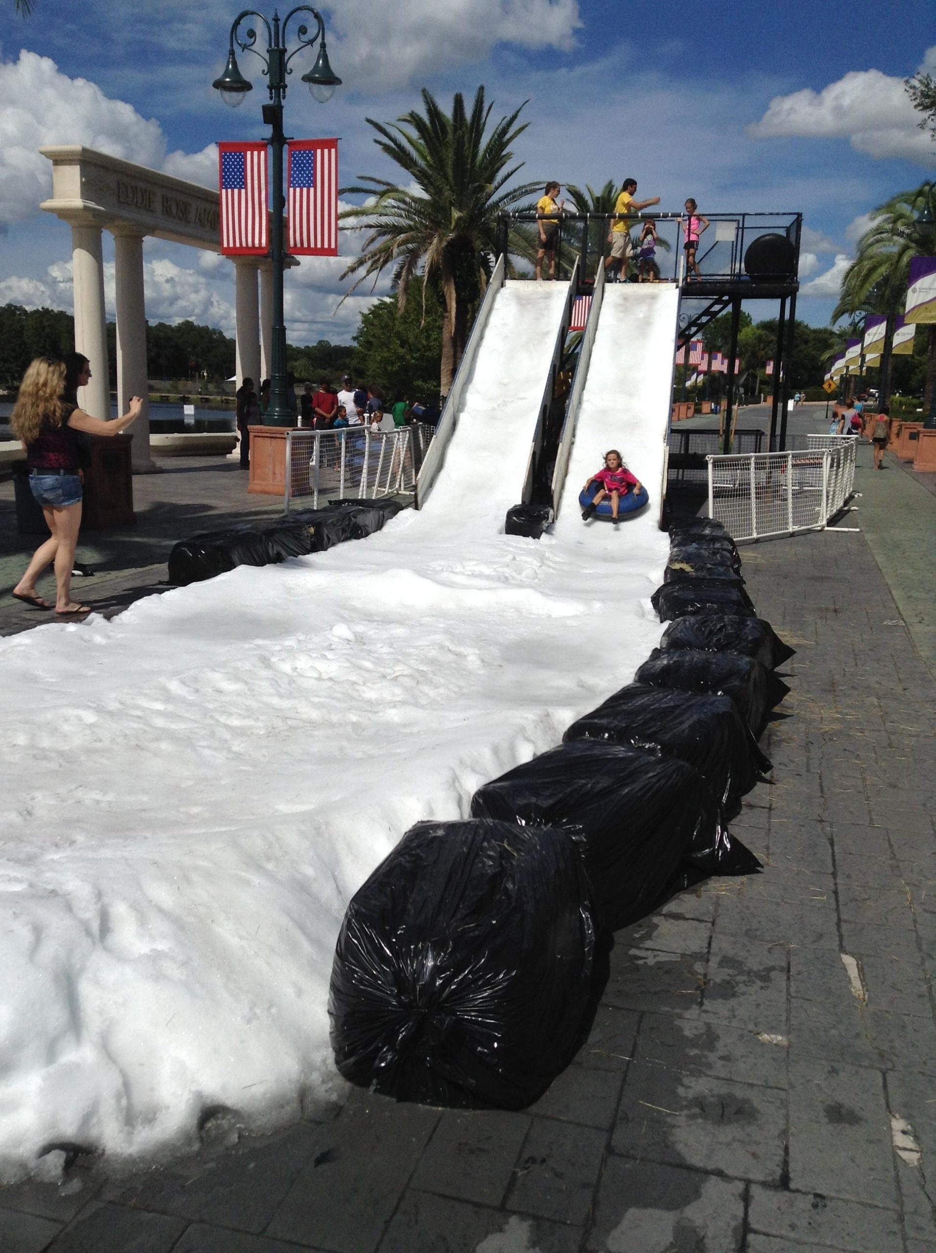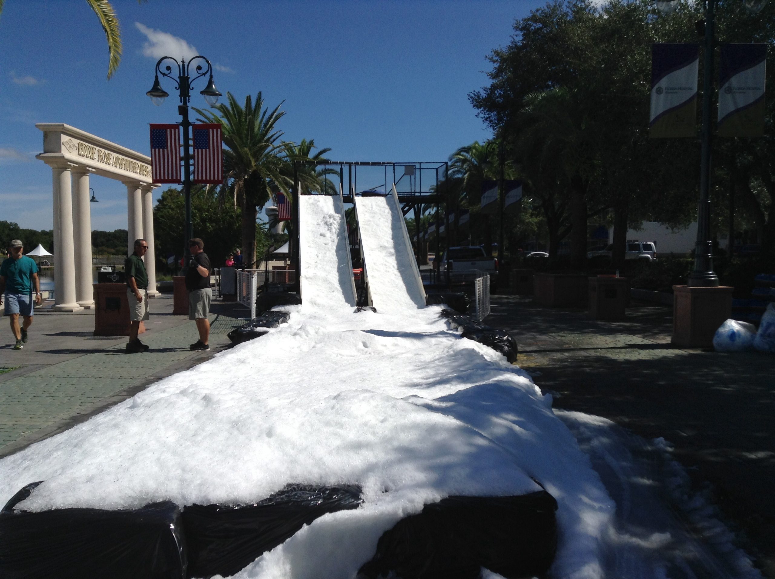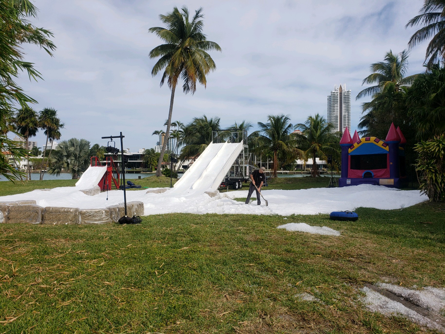 We can make it snow in Florida with the best snow machine rentals in Florida. We offer quality production level evaporative snow machines that produce fake snow effects. Our Florida snow machine rentals include dissolving snow that evaporates without residue or slippery components. In addition to evaporative snow machines, we provide Real Snow, Large Snow Slides, faux snow, snow blankets, snow gobo light projections, dancing 18′ Frosty the Snowman, bubble machines, hazer machines, fog machines, low level CO2 fog, CO2 Blasters, Venturi Confetti Cannons, Remote Confetti Cannons, Balloon Drops, T-Shirt Launchers, Cold Sparks and Pyrotechnics.