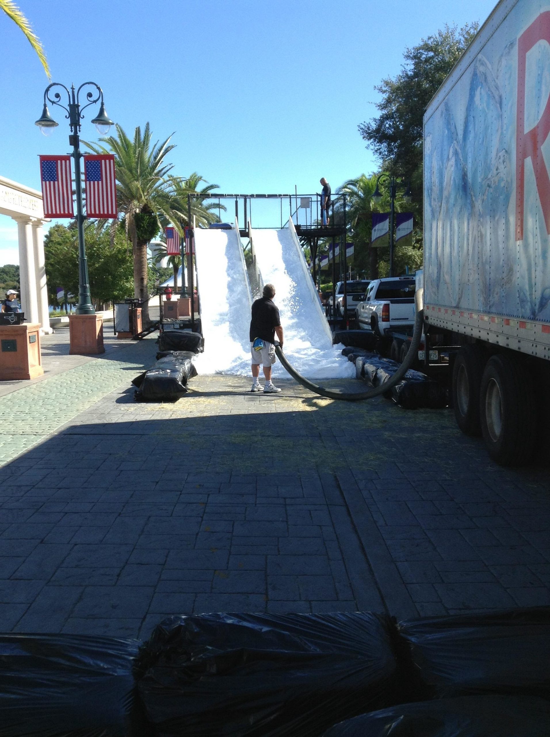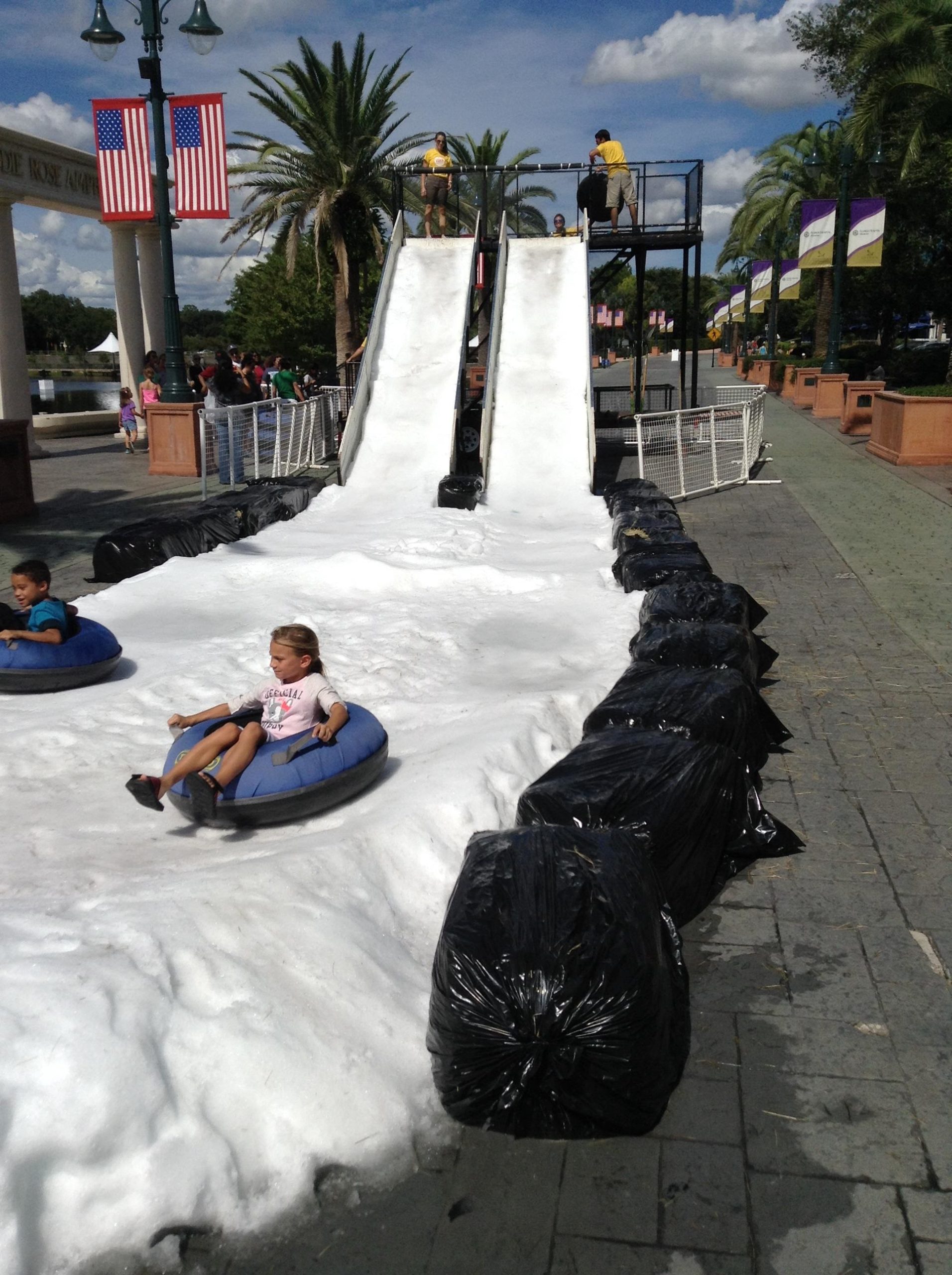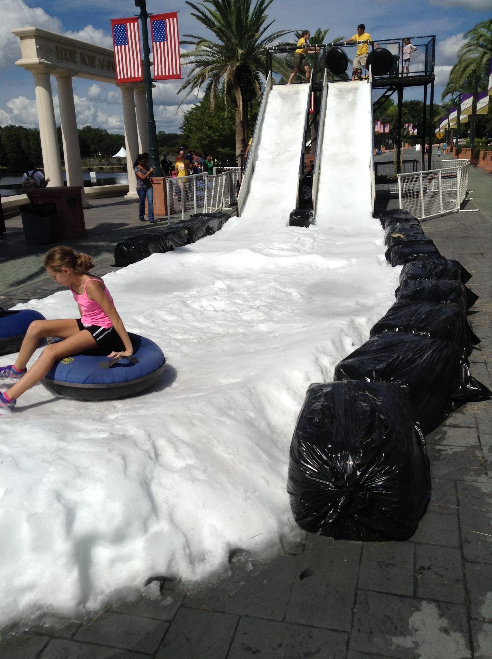 We can make it snow in Florida with the best snow machine rentals in Florida. We offer quality production level evaporative snow machines that produce fake snow effects. Our Florida snow machine rentals include dissolving snow that evaporates without residue or slippery components. In addition to evaporative snow machines, we provide Real Snow, Large Snow Slides, faux snow, snow blankets, snow gobo light projections, dancing 18′ Frosty the Snowman, bubble machines, hazer machines, fog machines, low level CO2 fog, CO2 Blasters, Venturi Confetti Cannons, Remote Confetti Cannons, Balloon Drops, T-Shirt Launchers, Cold Sparks and Pyrotechnics.