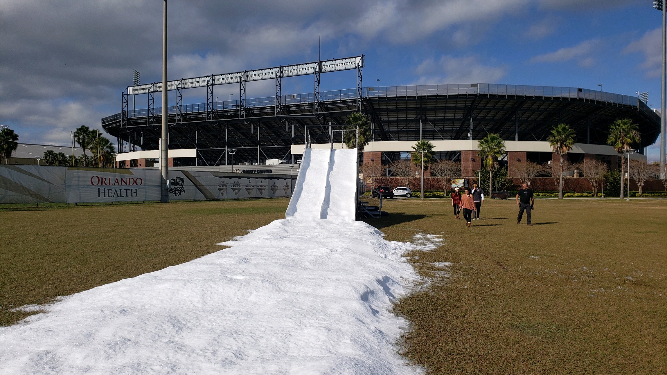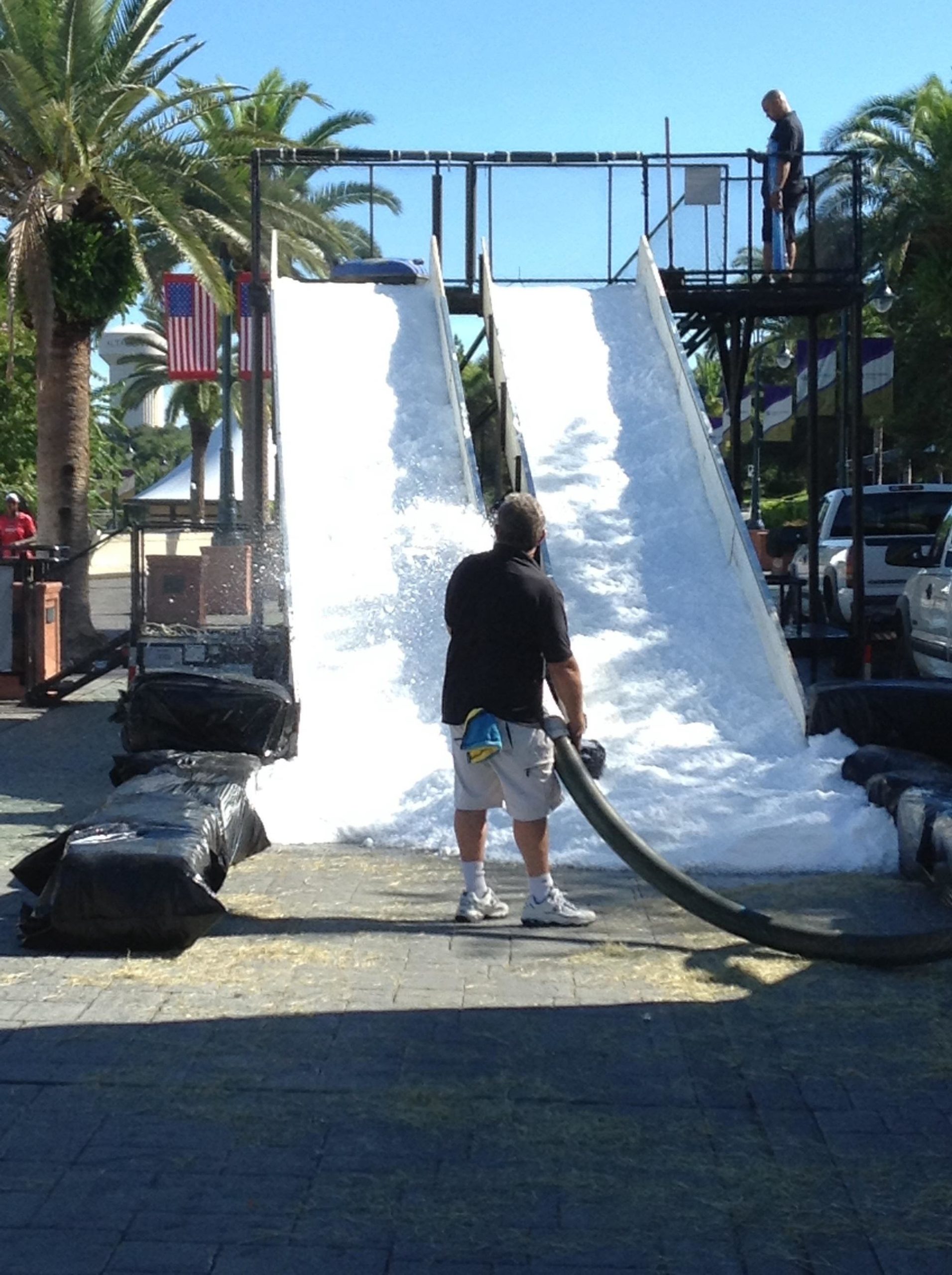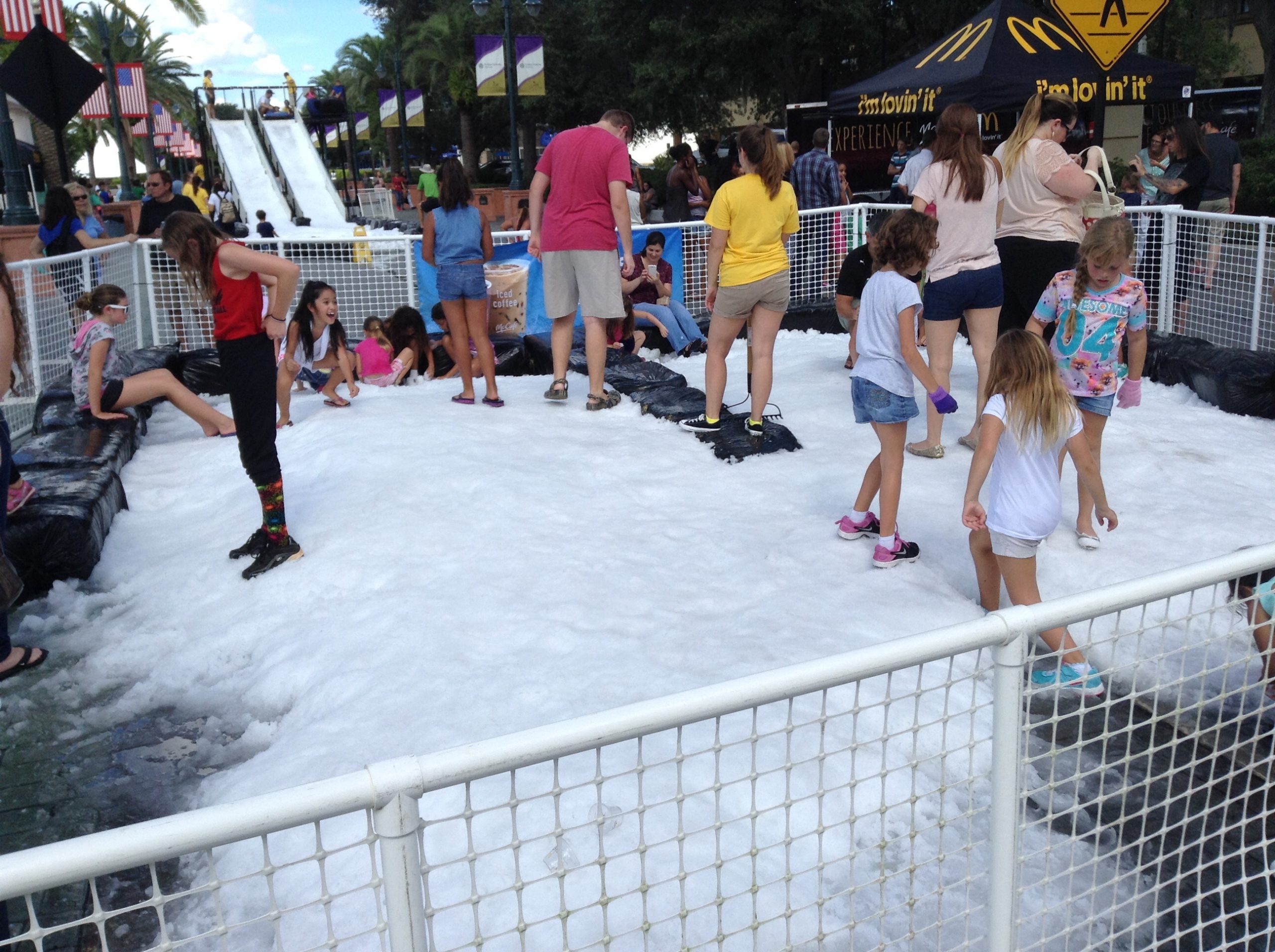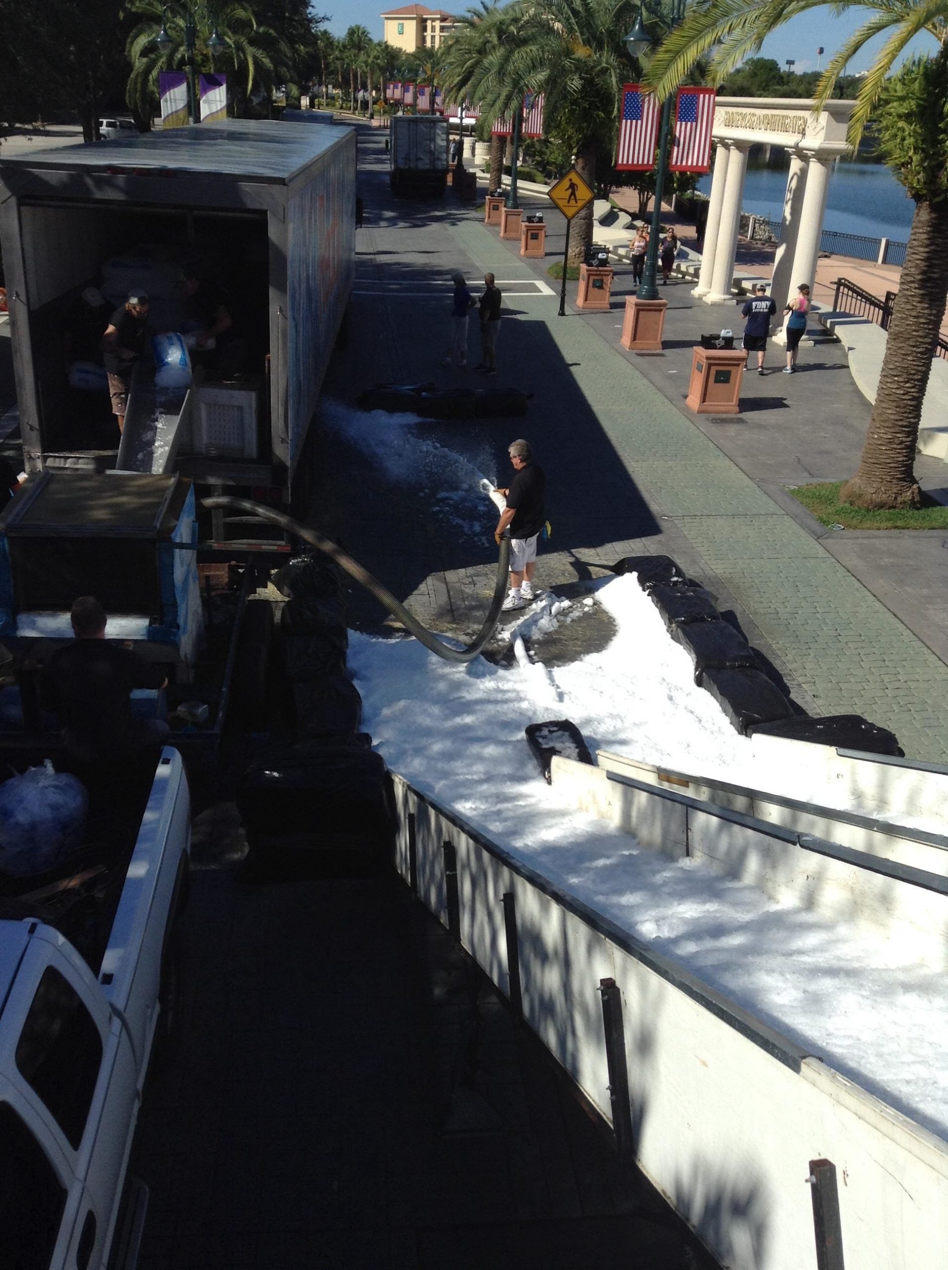 We can make it snow in Florida with the best snow machine rentals in Florida. We offer quality production level evaporative snow machines that produce fake snow effects. Our Florida snow machine rentals include dissolving snow that evaporates without residue or slippery components. In addition to evaporative snow machines, we provide Real Snow, Large Snow Slides, faux snow, snow blankets, snow gobo light projections, dancing 18′ Frosty the Snowman, bubble machines, hazer machines, fog machines, low level CO2 fog, CO2 Blasters, Venturi Confetti Cannons, Remote Confetti Cannons, Balloon Drops, T-Shirt Launchers, Cold Sparks and Pyrotechnics.